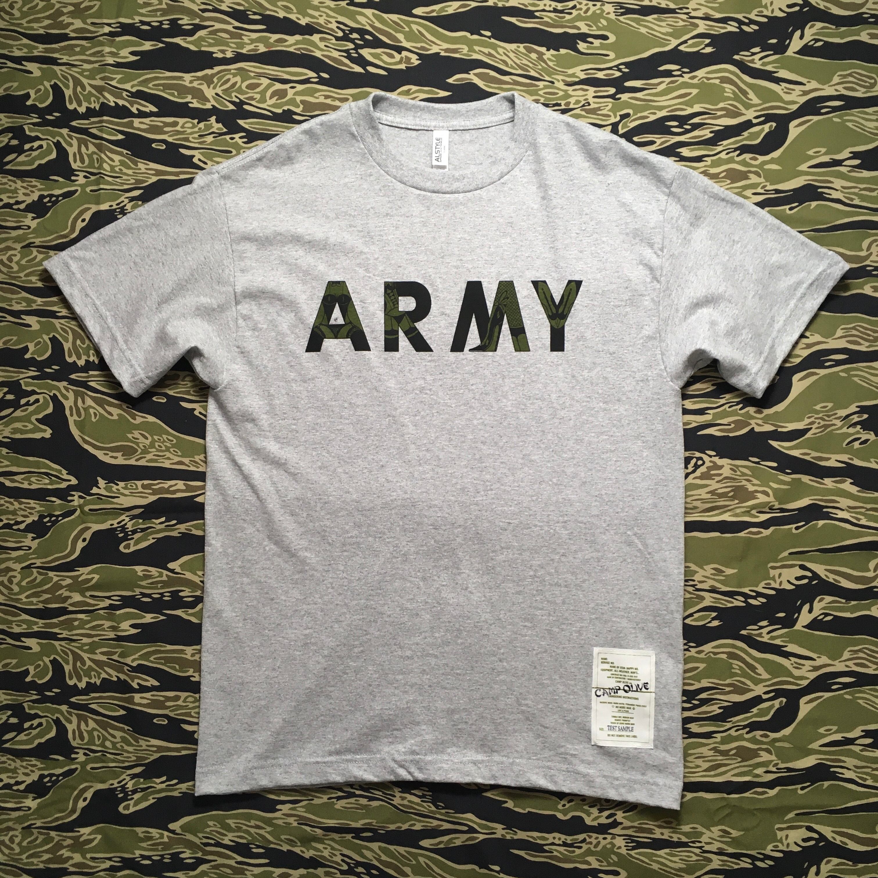 アメリカ陸軍が着用しているトレーニングTシャツを崩したデザイン。